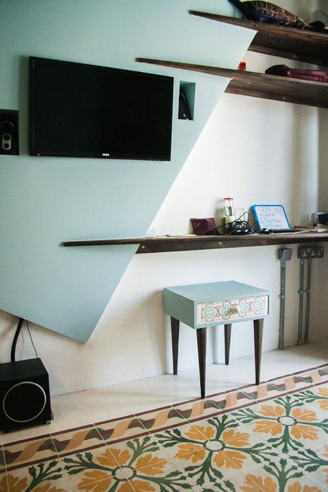 This studio flat has been designed to match the maltese pattern style. An industrial finish is mixed with traditional antique furniture, making everything blend seamlessly. The space is compact, flexible, and modern.